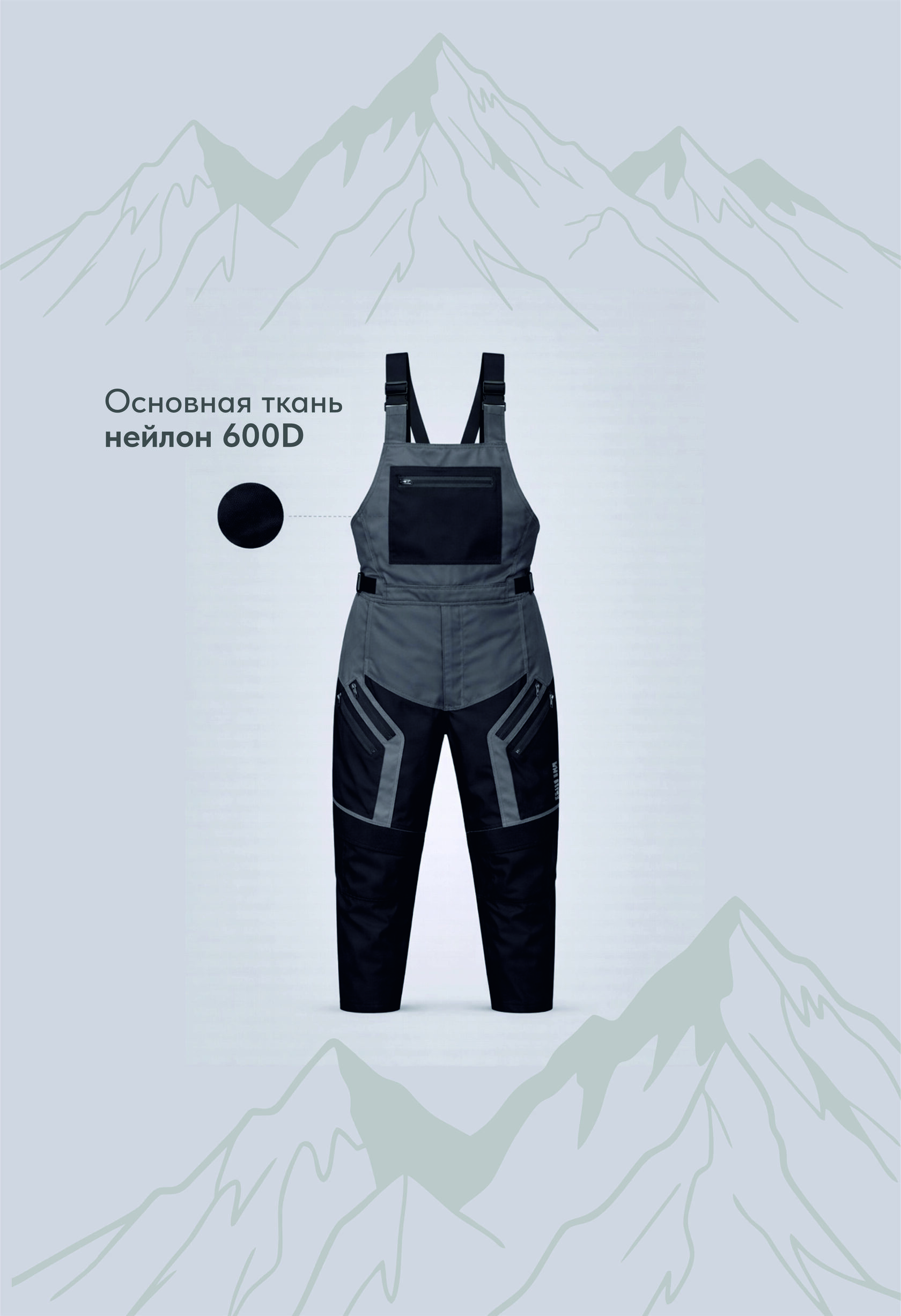 Отлично удерживают тепло. Предназначена для холодного снежного сезона. Двойная штанина защищает от попадания снега. Отличный выбор для тех, у кого сезон длится круглый год. Дополнительные карманы на штанинах и в нагрудной части.